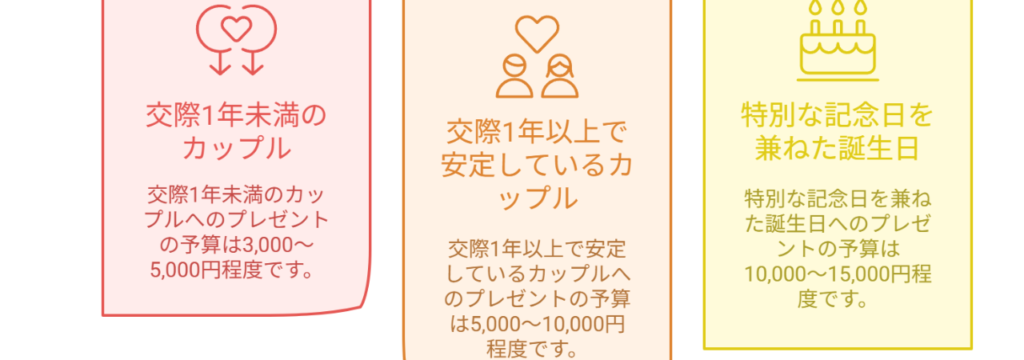 - 交際1年未満のカップル → 3,000〜5,000円程度