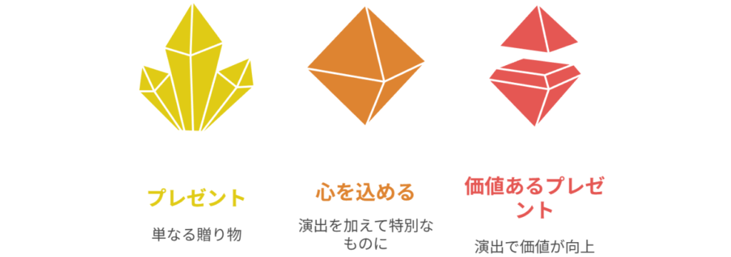 こうした「心を込めた演出」が、プレゼントの価値を何倍にも高めてくれます。