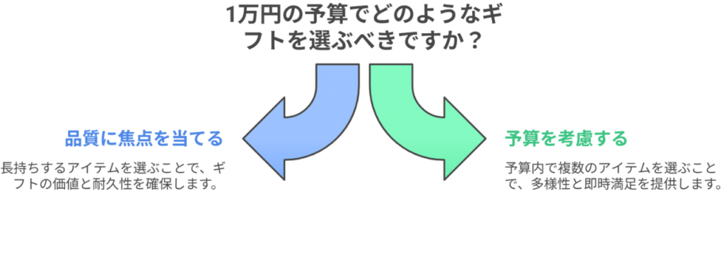 特に1万円という金額なら、品質にこだわった長持ちするアイテムを選ぶのがポイントです。