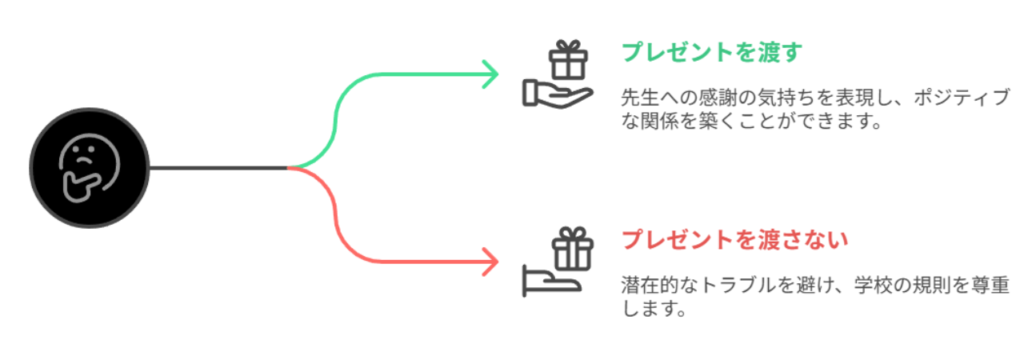 実際に、先生の立場や学校の規則によってはプレゼントがトラブルの原因になることもあります。