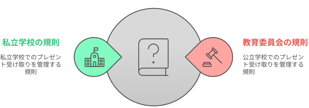 公立学校では教育委員会の規則で「金品の受け取りを禁止」しているケースが多く、私立学校でも独自のルールを設けていることがあります。