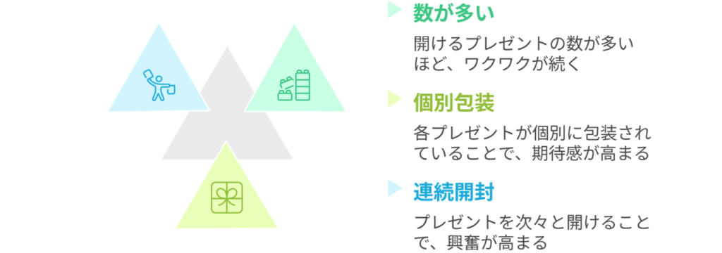 1つの大きなプレゼントも嬉しいですが、「いくつも包みを開ける楽しさ」は別格です。