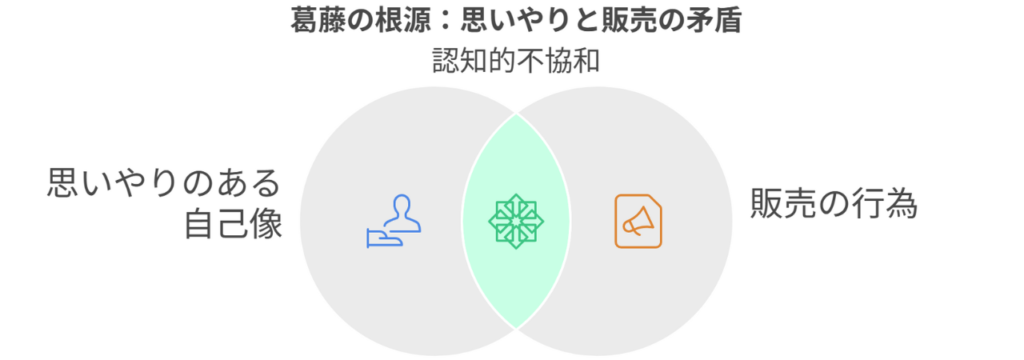 自分を「思いやりのある人」と思っているほど、売る行為が自己像と合わずに葛藤します。