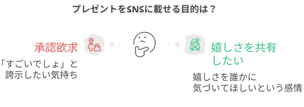 プレゼント投稿には、単純な自慢以外の感情が重なっています。